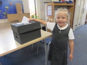 In selecting our Junior Governors, pupils in Year 6 write and deliver their own speeches to the whole school. Once pupils have heard the candidates’ speeches they go to the polling station.